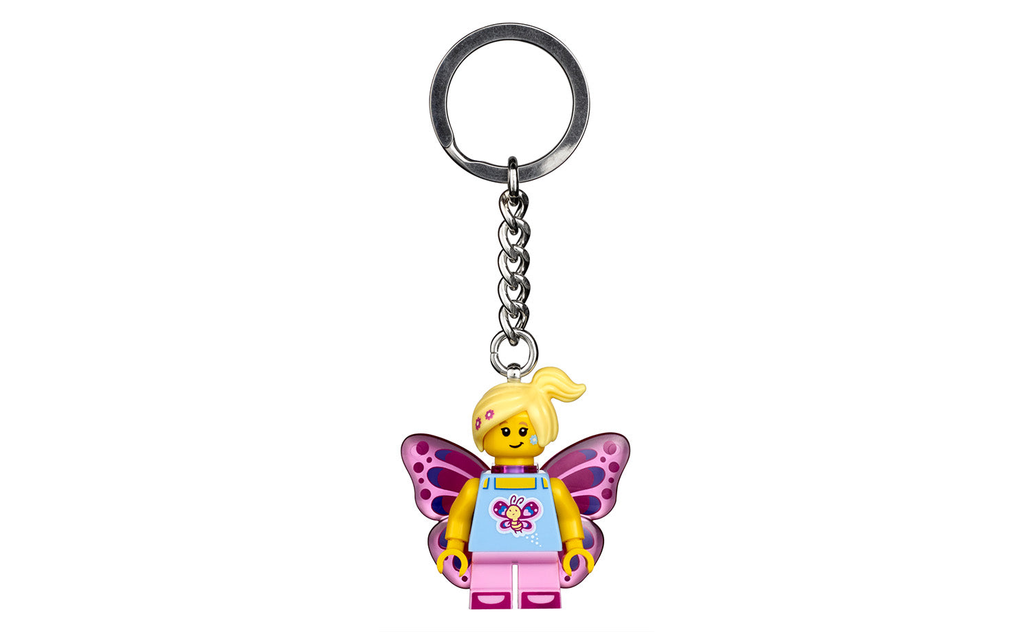 - Features the LEGO® Butterfly Girl minifigure attached to a durable metal ring and chain.