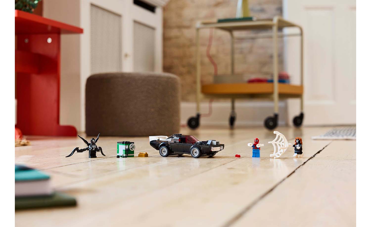 The buildable Venom car toy comes with 3 minifigures: Spider-Man with a web blaster, Venom with 4 tentacles and Spider-Woman (Julia Carpenter) with a flexible web that is large enough to ensnare a villain. The Venomized car features a shooter on each side, an accessible engine and an opening cockpit. Venom can sit inside the car by removing his 2 lower tentacles, which can be used to further Venomize the car. A safe containing gold bars inspires role-play action between the heroes and villain. The safe can be dragged away by the car, which also includes a compartment for the gold bars. For added digital fun, builders can zoom in, rotate models in 3D and track their progress using the fun, intuitive LEGO Builder app.