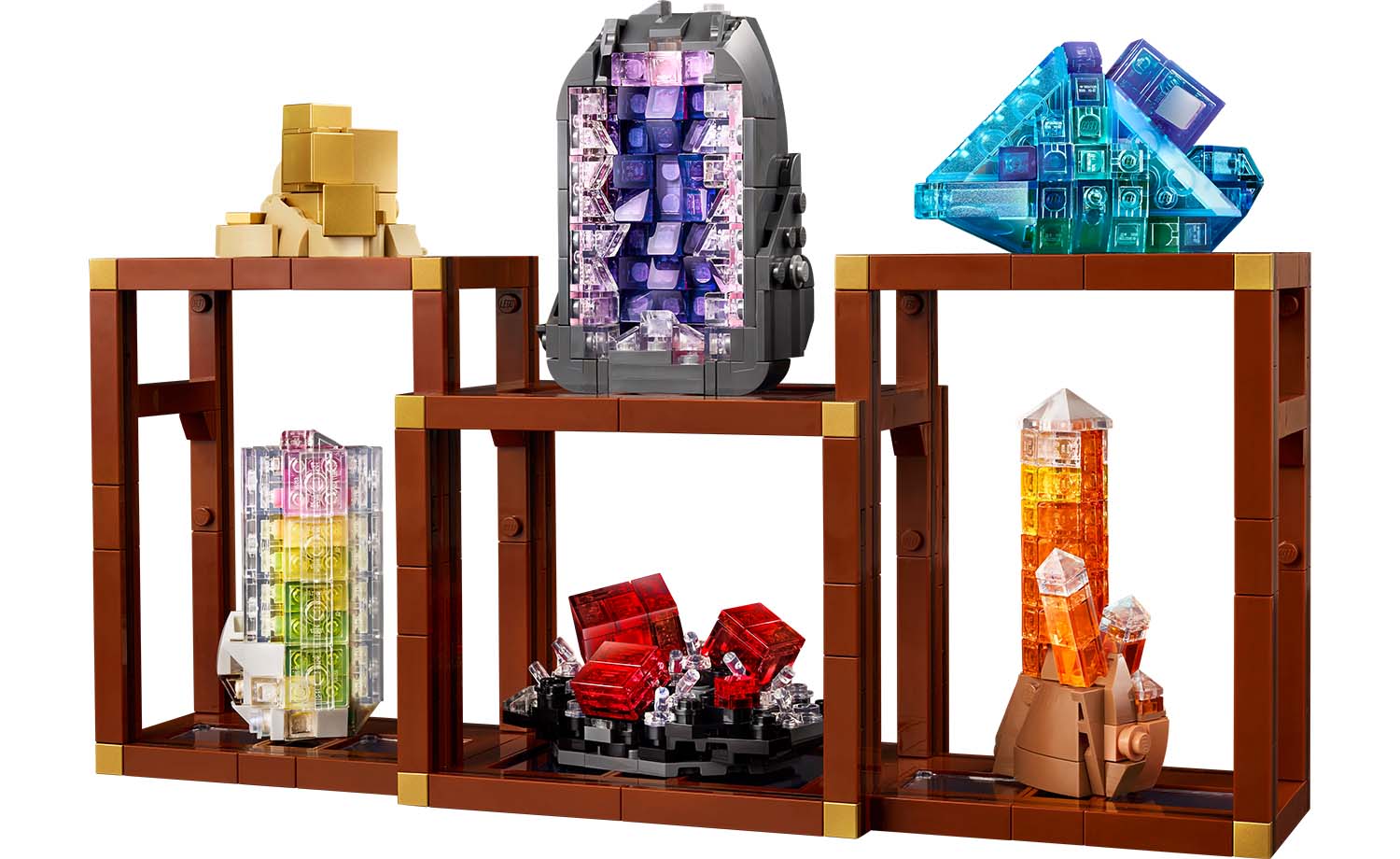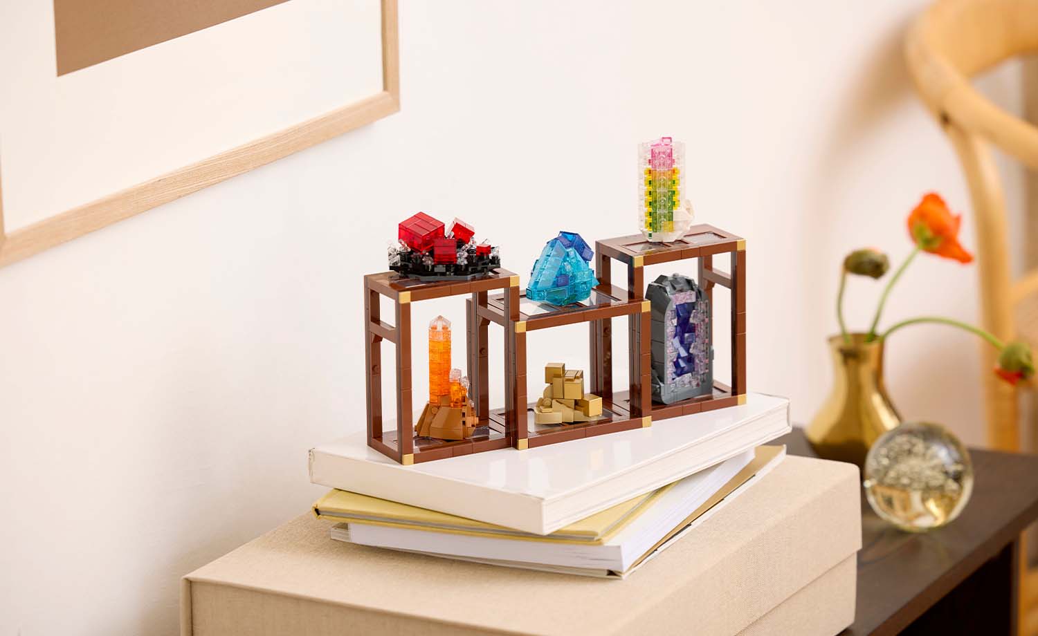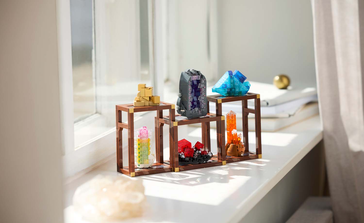 - Unique living room decor – Celebrate the beauty of nature with the LEGO® Ideas Mineral Collection, featuring colorful recreations of 6 minerals, plus 3 display shelf units