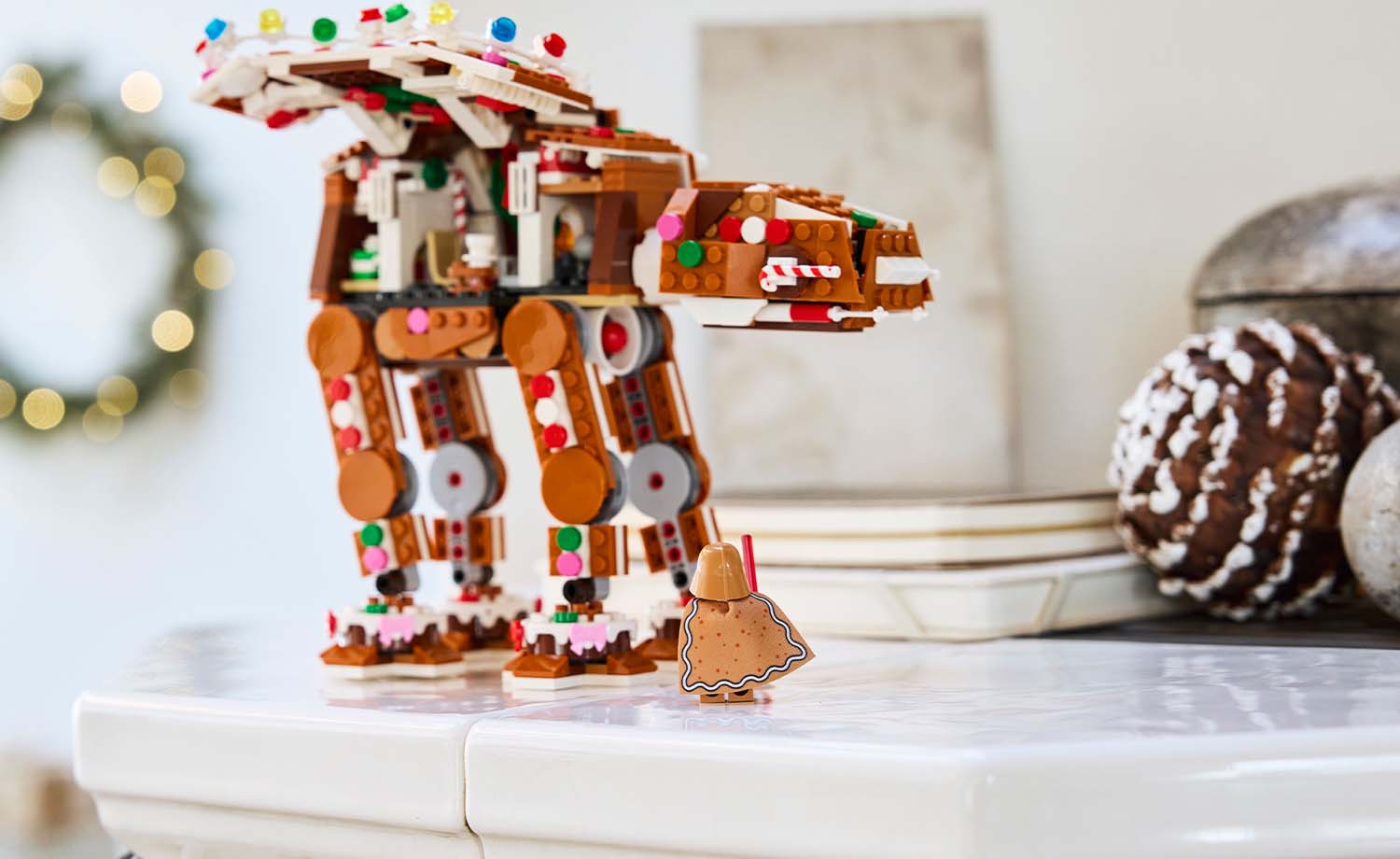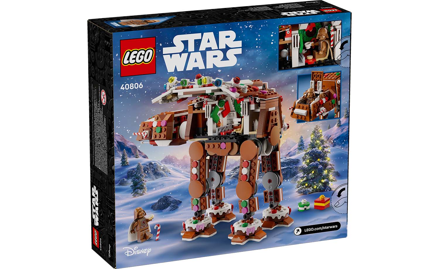 - Festive LEGO® Star Wars™ AT-AT walker – Features gingerbread-house-style decoration, posable legs, an opening LEGO minifigure cockpit and opening sides for easy access to the main compartment
