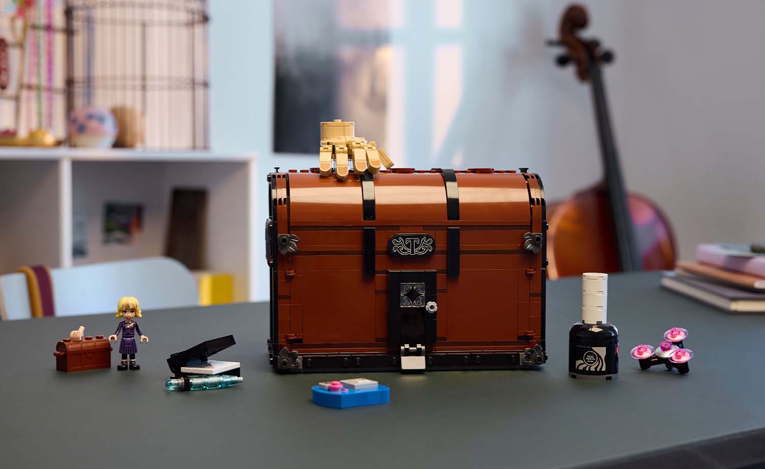 - Dimensions – When closed, this 828-piece trunk playset and room decor display piece measures over 13 cm (5 in.) high, 23 cm (9 in.) wide and 11 cm (4 in.) deep